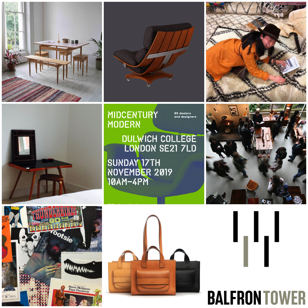 60 top midcentury dealers descend upon the bold brutalist Christison Hall and red brick Victorian cloisters of Dulwich College on Sunday 17th November with 28 modern designers too. What could be better pre-xmas? Modern and vintage finds for your home and workspace plus the odd pressie thrown in too. Expect an eclectic mix including original travel, film posters and artwork, iconic furniture, industrial, lighting, rugs, textiles, throws, glass pieces, ceramics, wallpaper and jewellery. Showcasing the very best in 20th Century design from Britain, Europe, America and Scandinavia along with a stunning array of contemporary pieces for your home in a unique setting, there really is something for everyone.